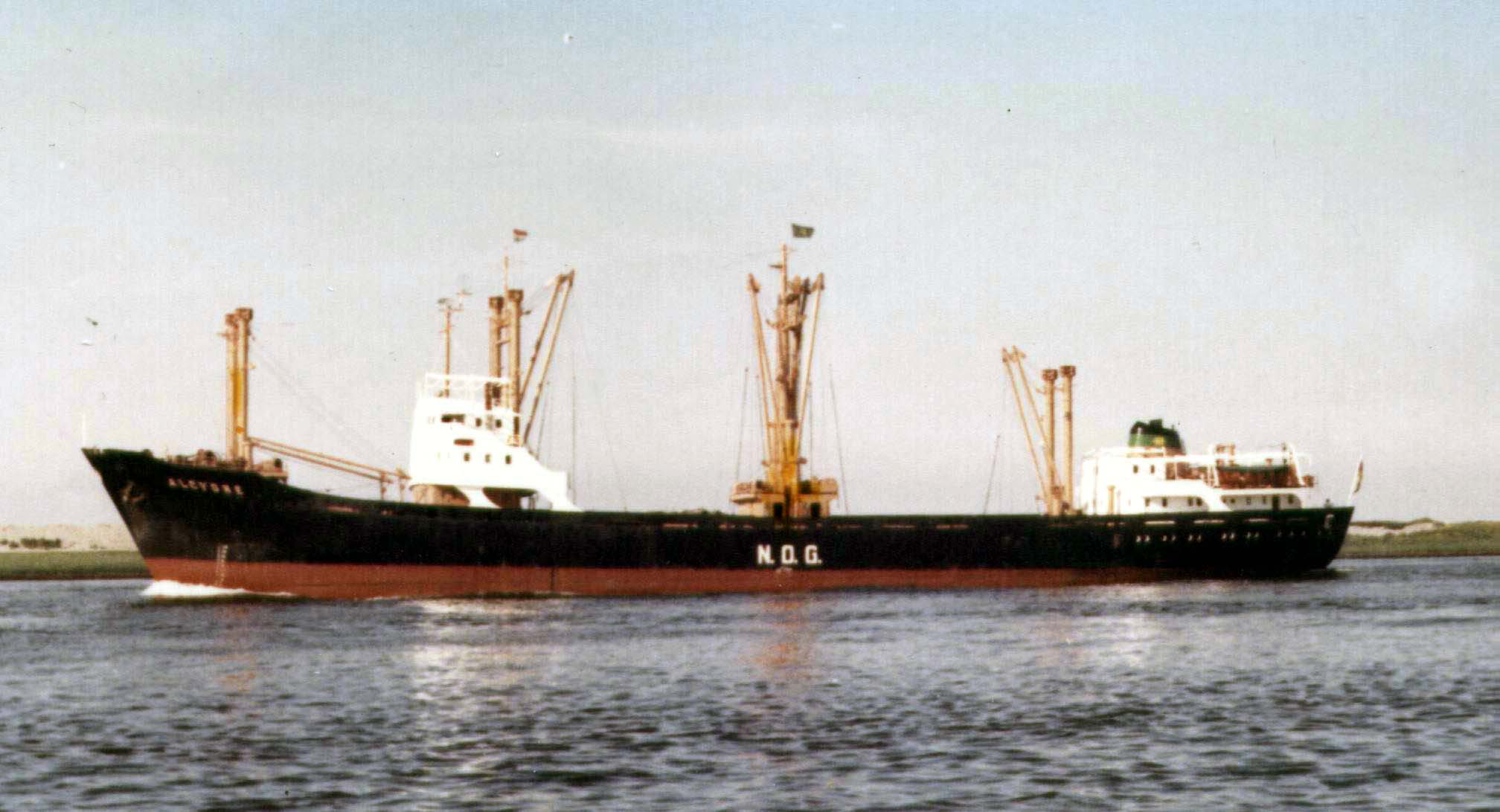 1956 wurde die Alcyone in Dienst gestellt. Auf diesem Foto aus den frühen 70er Jahren ist sie schon mit schwarzem Rumpf und dem Schriftzug N.O.G. zu sehen. Die Nah-Ost-Gemeinschaft, war ein Konsortium der deutschen Levante-Reedereien Argo, H. Schuldt, Transmarin und Hamburg-Süd.