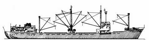 Deutlich erkennbar ist, daß es sich bei der AURIGA um einen HANSA A - Frachter handelt. Die Argo hat das Schiff von 1956 bis zu seiner Verschrottung 1965 im Mittelmeer - Dienst eingesetzt.